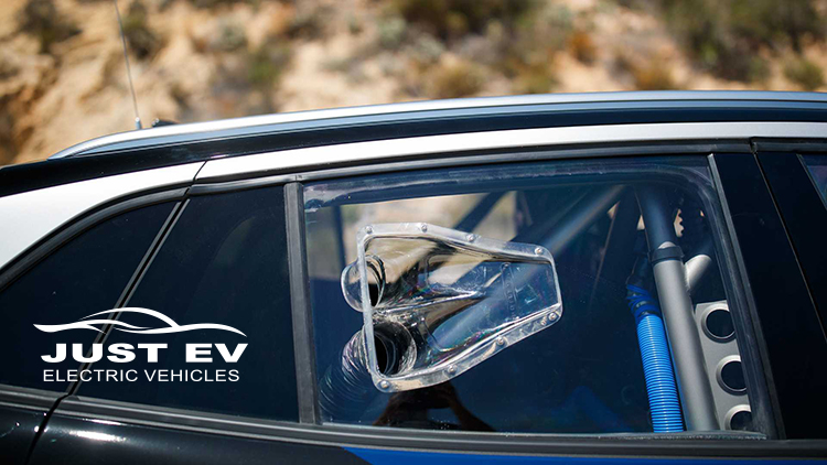 ” تم ترك محرك كهربائي بقوة 201 حصان وحزمة بطارية وأنظمة قيادة مخزونًا للسباق ، لكن تم تجريد المقصورة الداخلية وتعديلها باستخدام قفص لفة ومقاعد سباق وشاشات تكميلية للبيانات الأساسية مثل درجة حرارة البطارية. دعامات ملفوفة على شكل رالي في جميع العجلات الأربع وأذرع التحكم السفلية الأنبوبية في الوصلات الخلفية السفلية الأمامية والمغطاة. تم رفع الرادياتير عدة بوصات لتحسين زوايا الاقتراب وقدرة التبريد ، وألواح انزلاقية إضافية من الصلب مقاس 3/8 بوصة تمت إضافته إلى الهيكل السفلي “.
