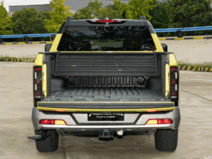 في الداخل، تقدم Frontier Pro PHEV تصميمًا يشبه سيارات الركاب مع شاشة تحكم مركزية مقاس 14.6 بوصة مع الاحتفاظ بالأزرار المادية. تأتي مزودة بنظام صوتي Focal من فرنسا وفتحة سقف بانورامية كبيرة جدًا. يمكن فتح الأبواب الخلفية بزاوية 90 درجة، كما يوفر مسند ظهر المقعد الخلفي ثلاثة مستويات لضبط الزاوية لمزيد من الراحة.
