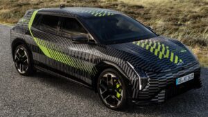 يتميز النموذج الأولي الكهربائي ذو شكل الهاتشباك بمصدات أمامية وخلفية معاد تصميمها، وعجلات مقاس 20 بوصة بإطارات ميشلان بايلوت سبورت، ومكابح باللون الأخضر، وعبارة “إثارة رائعة” مكتوبة على هيكل السيارة بالكامل – أعتقد أن هذا ما تعنيه كيا بـ “GT” – وليس “Grand Tourer” أو “Grand Turismo”.
