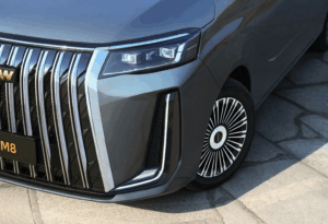 في الخلف، تتميز M8 بجناح خلفي مدمج مع مصباح مكابح علوي مدمج وماسحة زجاج خلفية. تتميز المصابيح الخلفية المتصلة بمصدر إضاءة متدرج. يتميز كل من طرازي EREV والبنزين بنظام عادم مخفي.